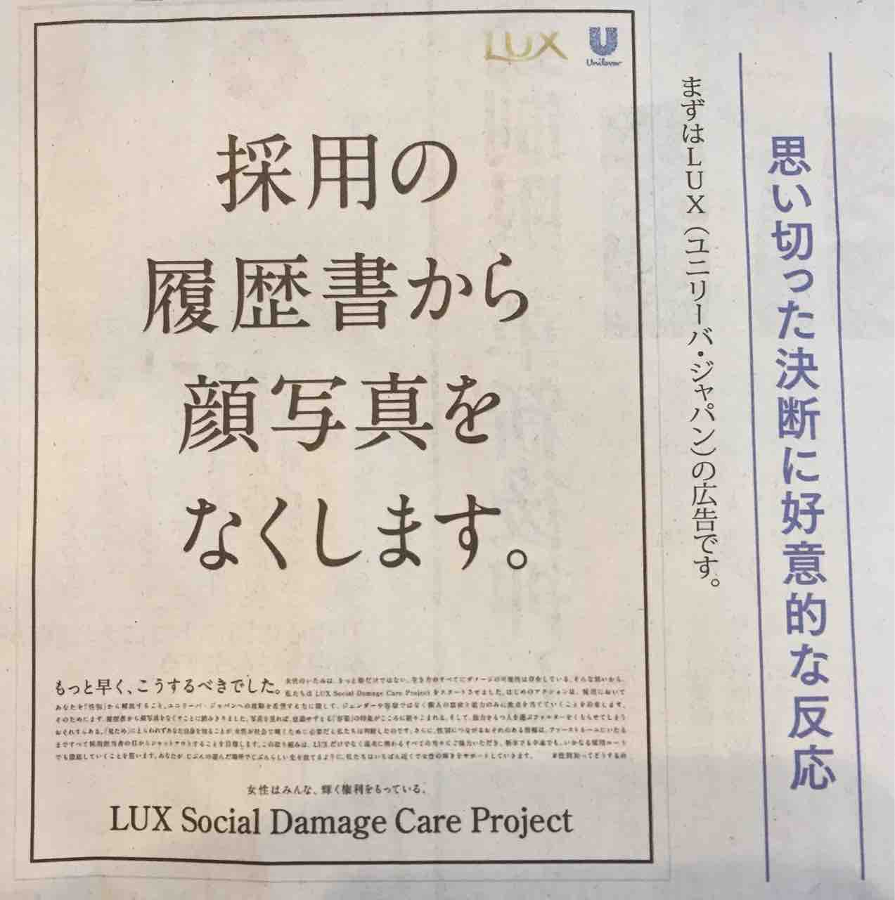 LUX、ユニリーバ・ジャパンの広告が以前に日経新聞の朝刊に掲載され、